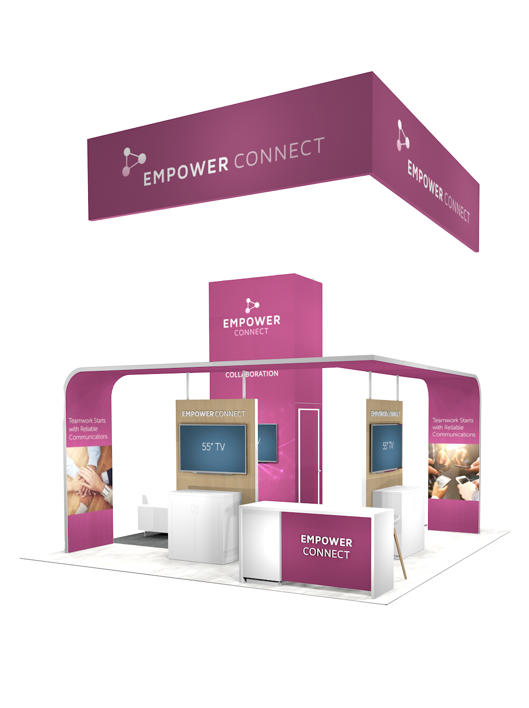 Yes, our exhibit design experts will provide multiple creative ideas, a final 3D rendering, and we’ll prepare and submit the artwork files. We’ll also help you place all of your show orders.