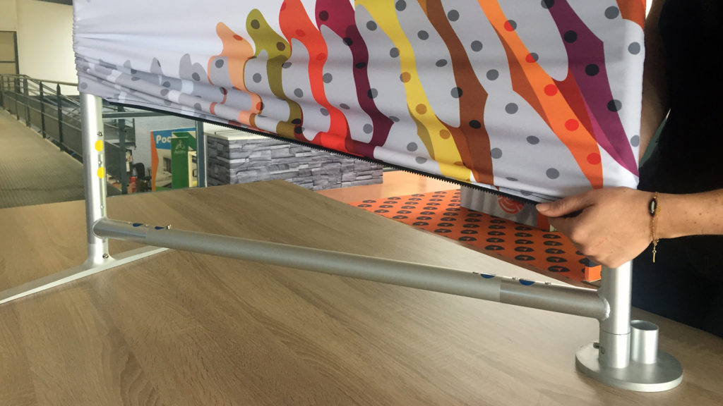 The tubes interlock with connectors, and a color-coding system is found on each frame for totally intuitive assembly. The graphic slips over the frame easily like a sock and covers the frame completely for exceptional execution.